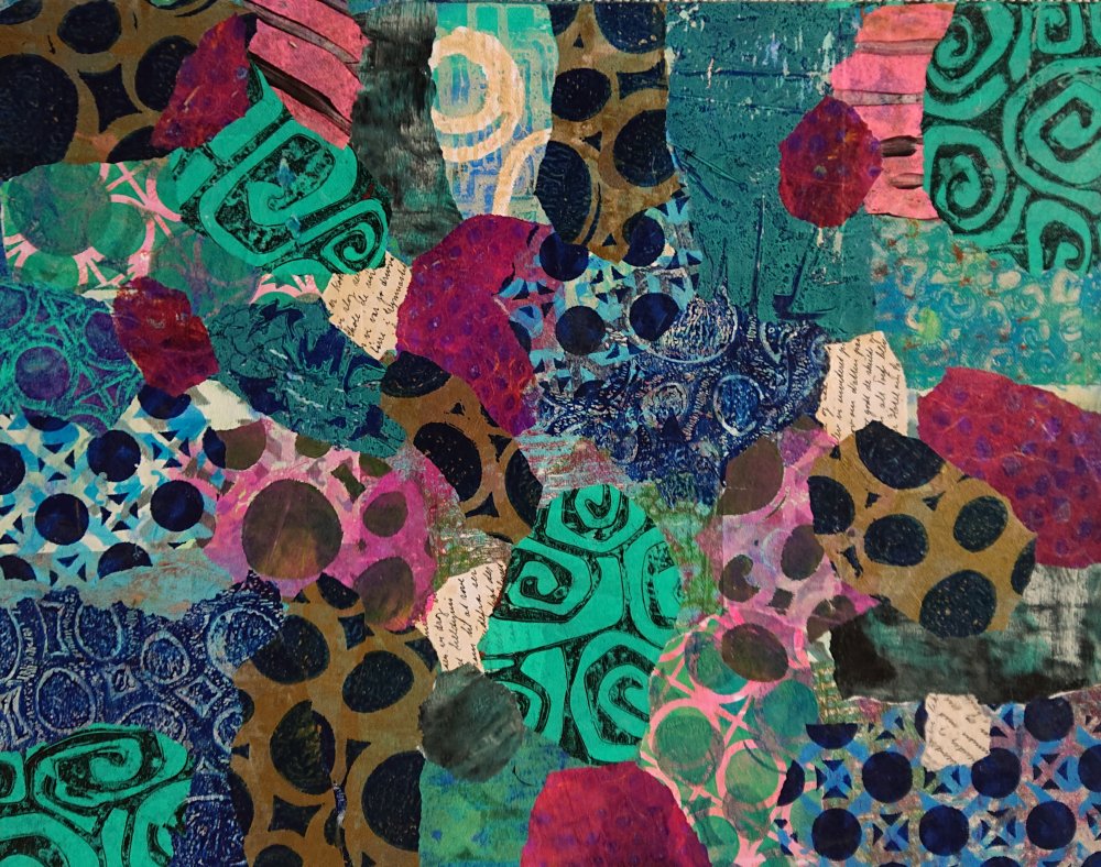 CO3 Grøn collage på lærred. 70x50 cm.