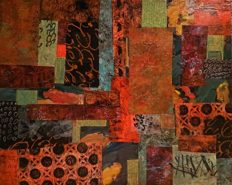 CO4 - Rød collage på lærred - 70x50 cm.
